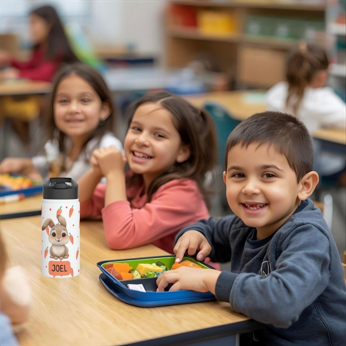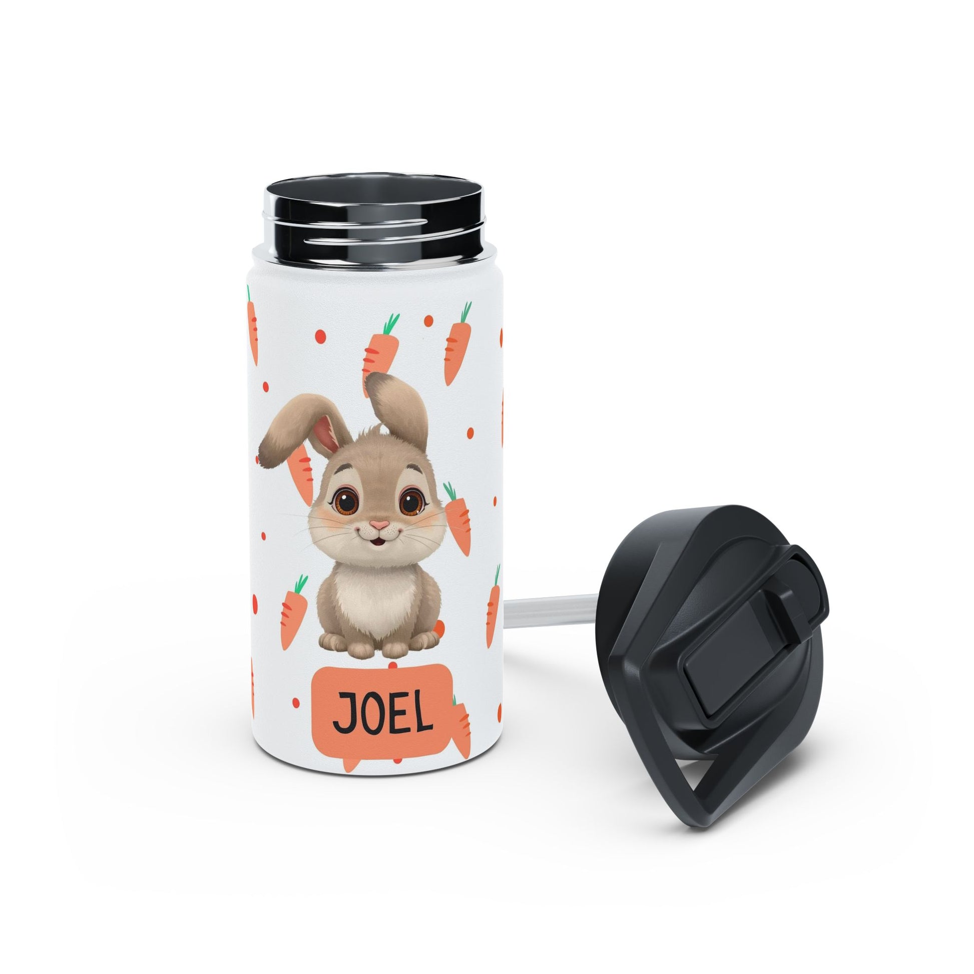 Pandarino Kinder-Wasserflasche aus Edelstahl mit Strohhalm, Hase, 355 ml, Thermosflasche, isolierte Wasserflaschen für Jungen, Mädchen